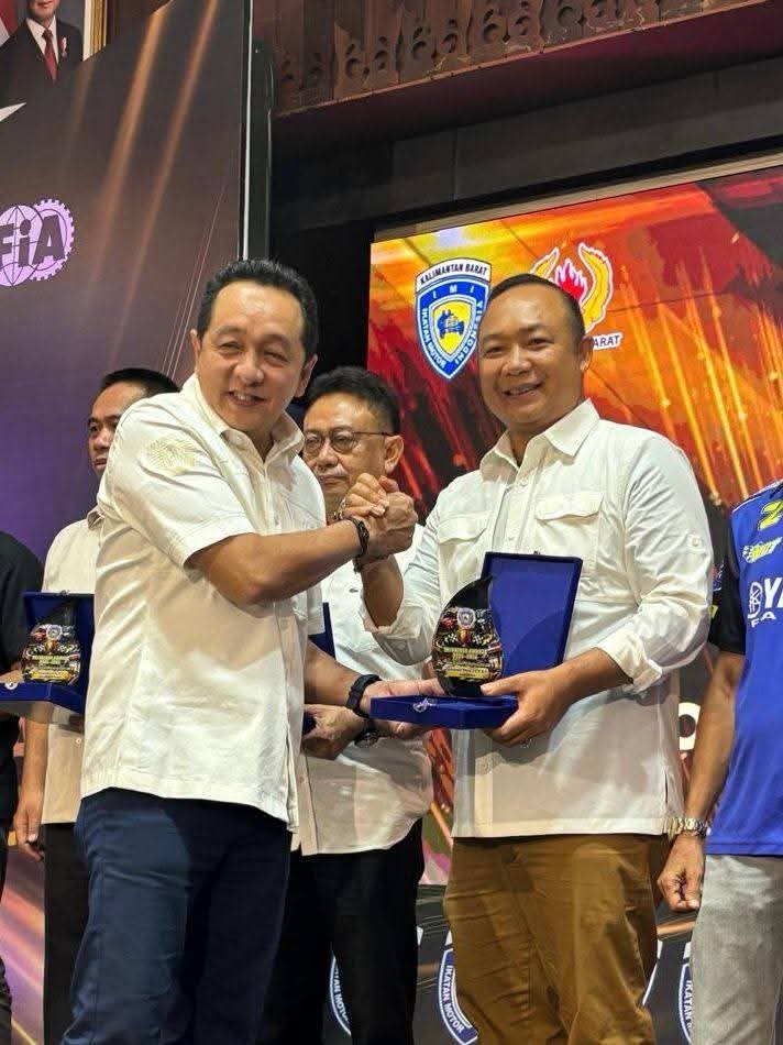 Pada kesempatan tersebut, Bupati menerima penghargaan bergengsi IMI Kalbar Awards Kategori ‘Tokoh Olahraga Otomotif Kalbar 2025’ sebagai bentuk apresiasi atas dedikasi dan kontribusi dalam mendukung perkembangan olahraga otomotif di Kalimantan Barat, khususnya di Kabupaten Ketapang.